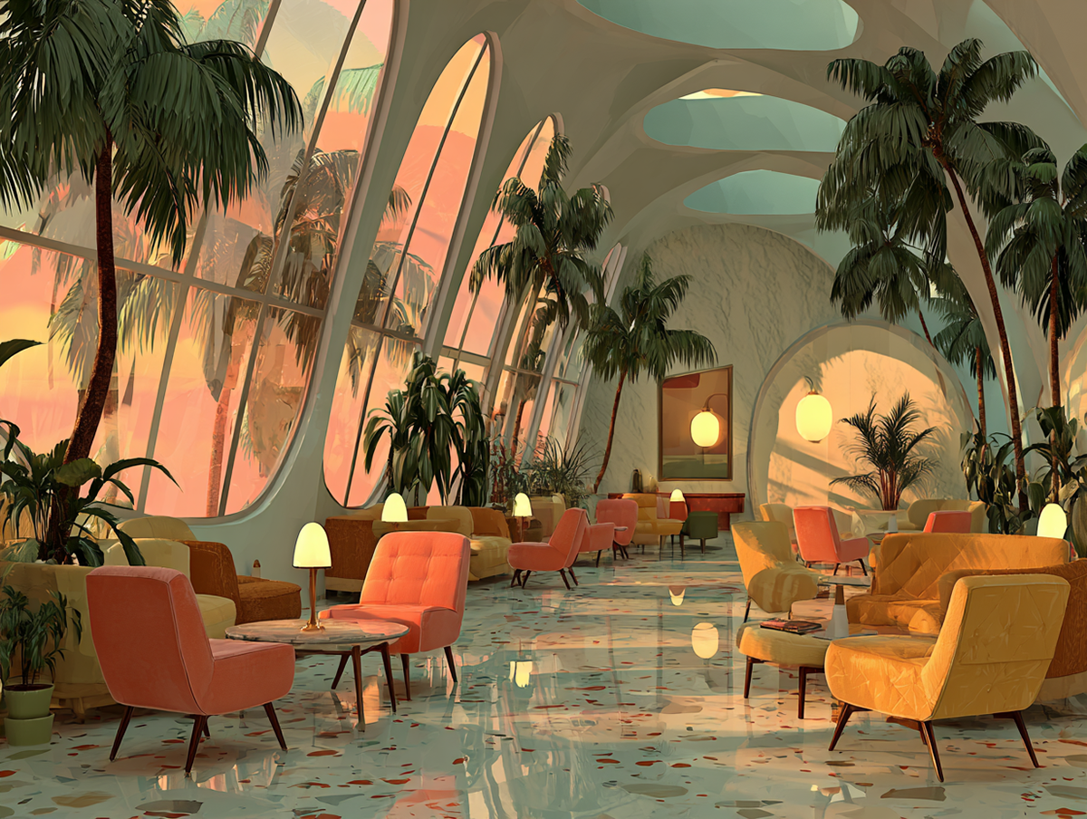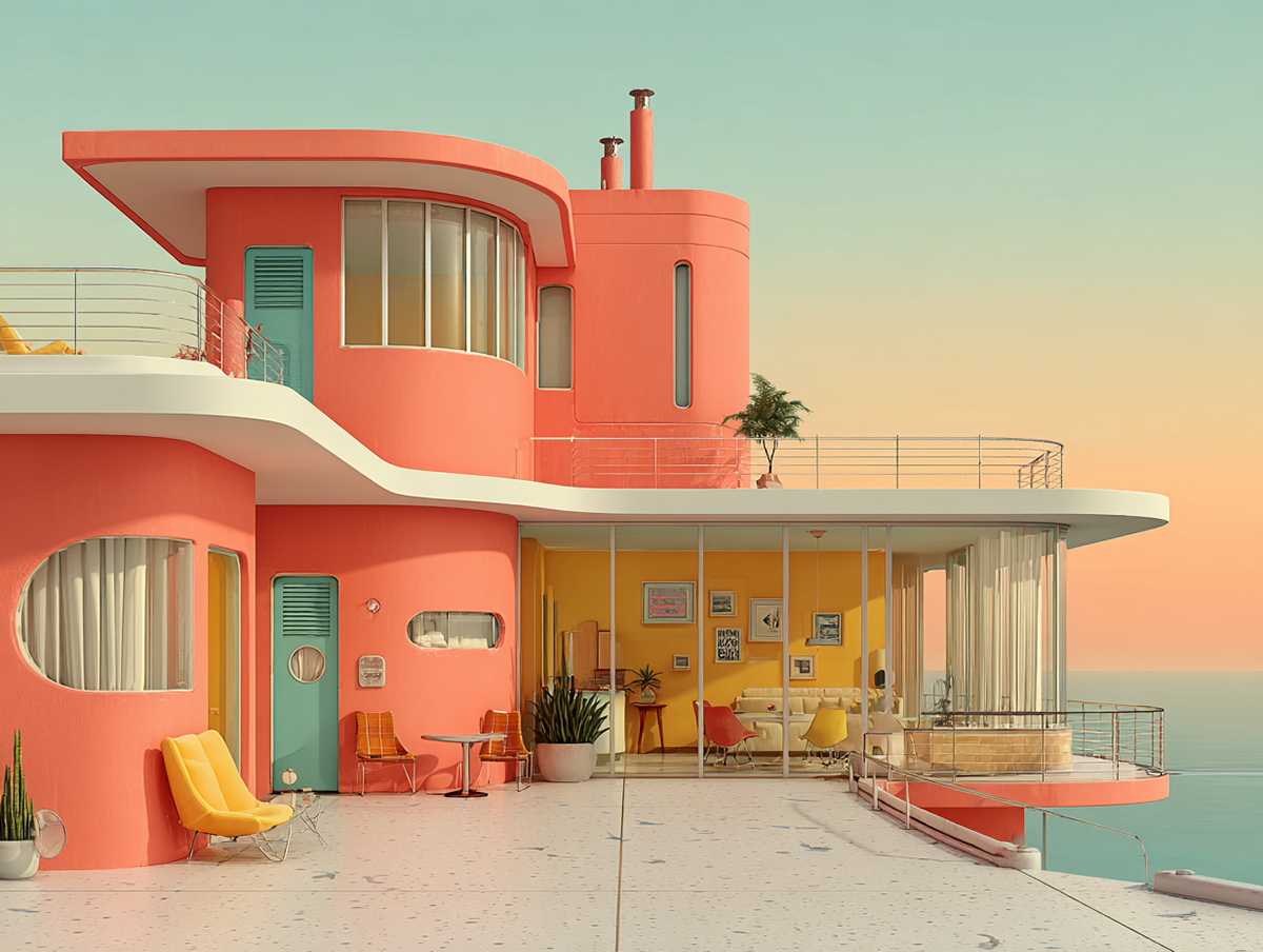 Personal: Interiors and Exteriors of a Town Inspired by Mid-Century Modern, Fantasy, and Retro Design